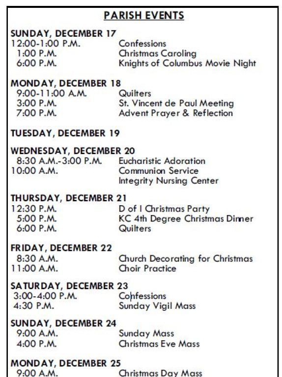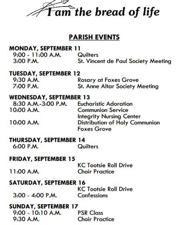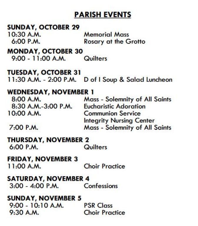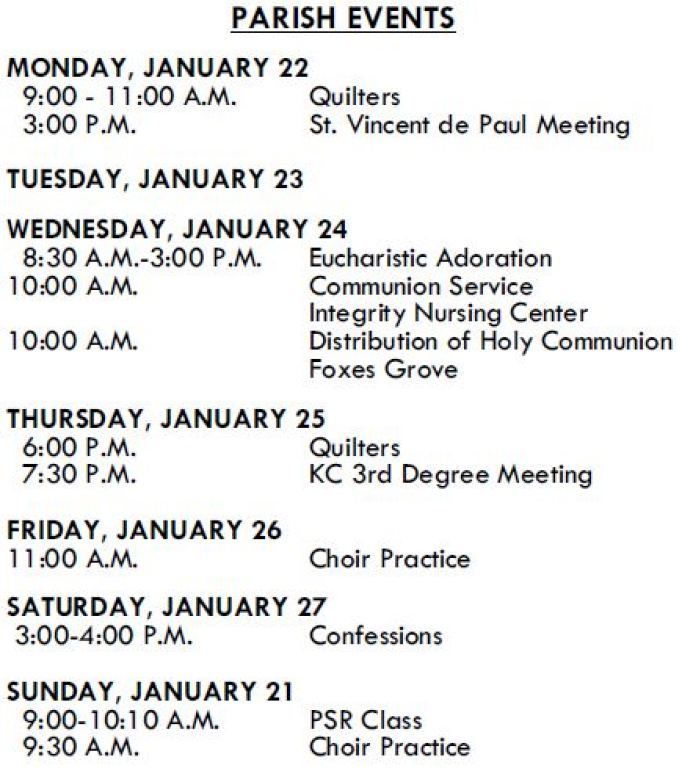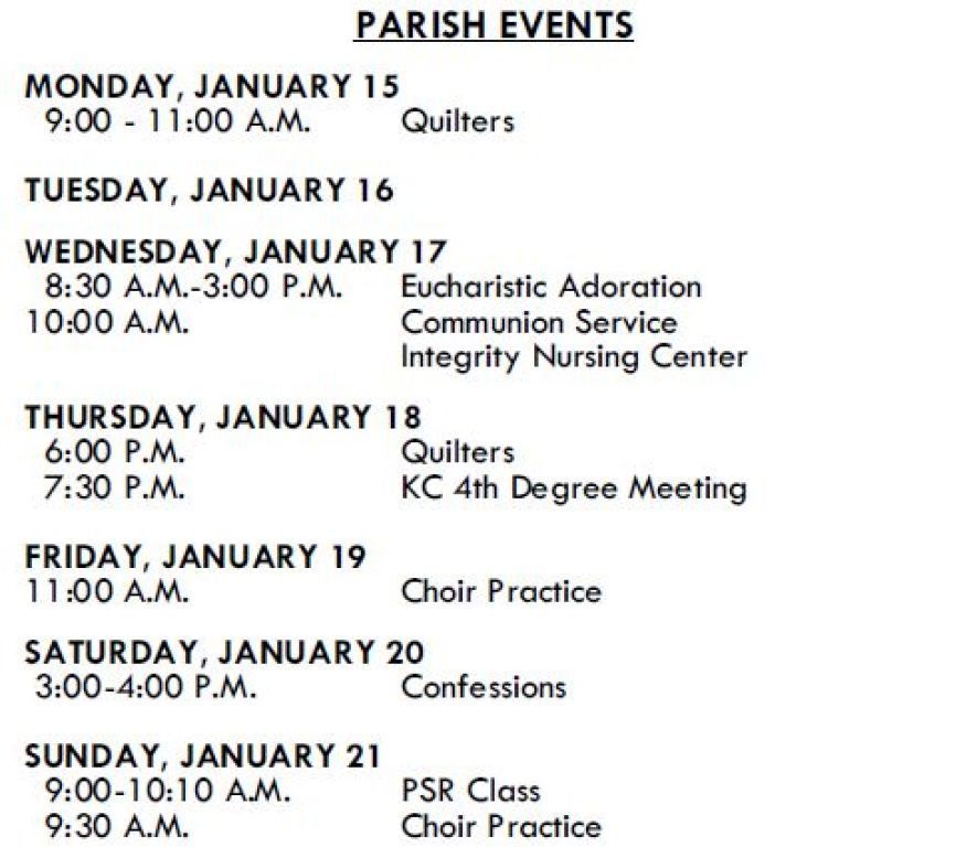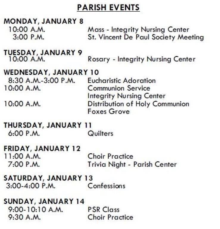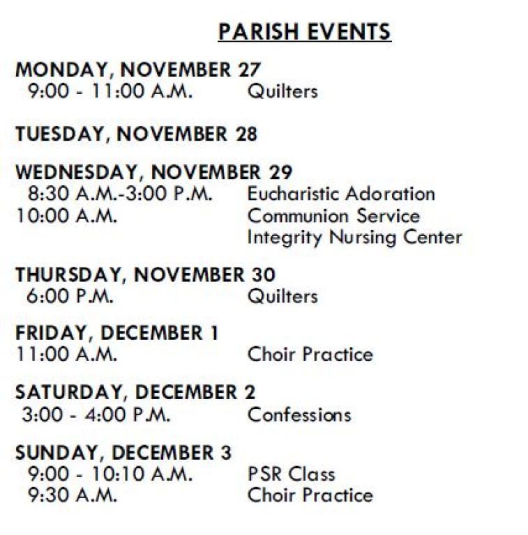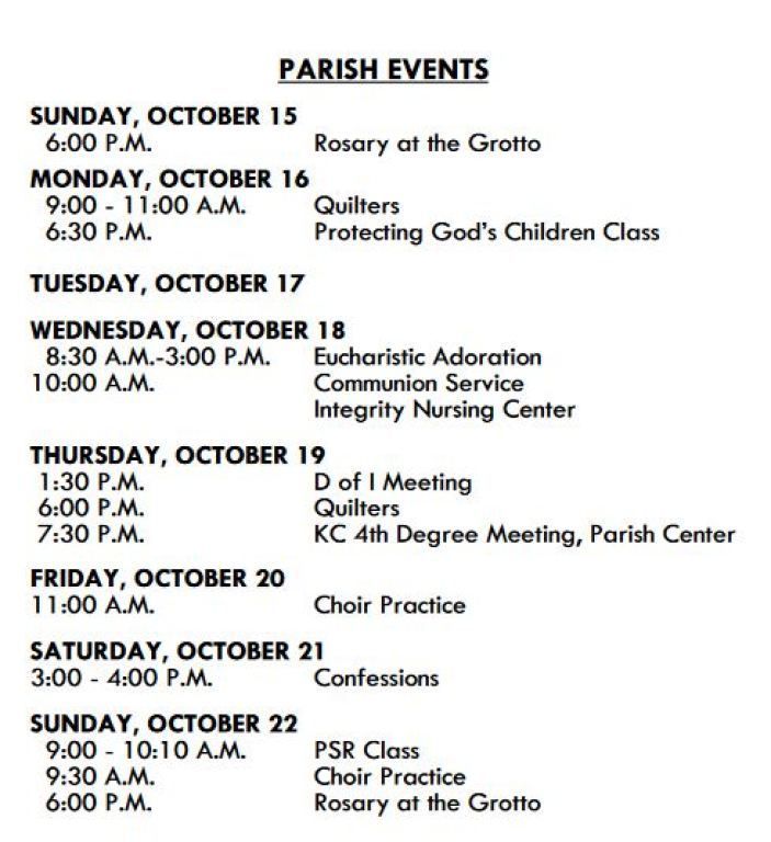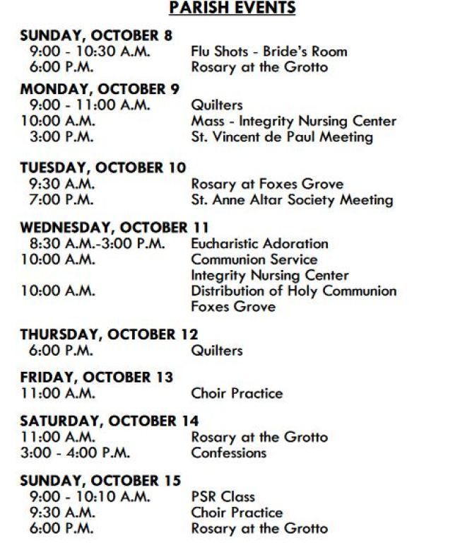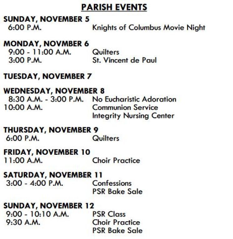 SEE THE APPROPRIATE BULLETINS FOR FUTURE PARISH EVENTS: