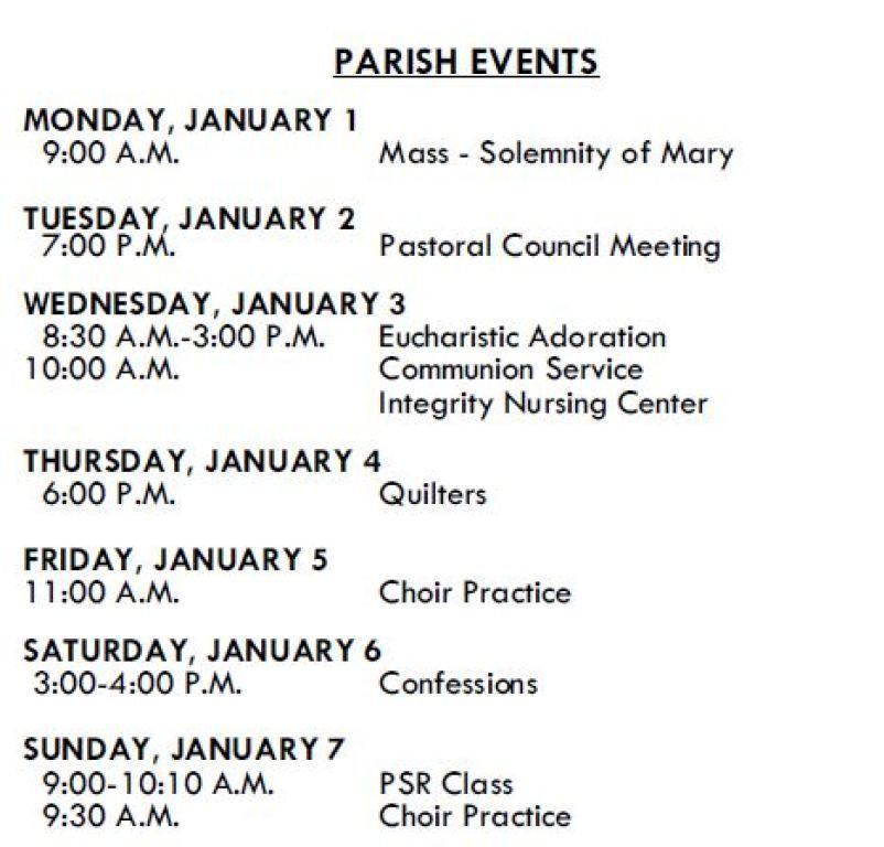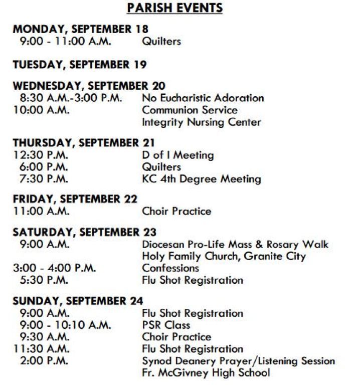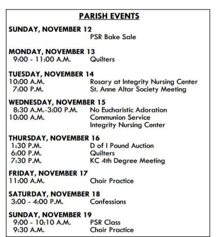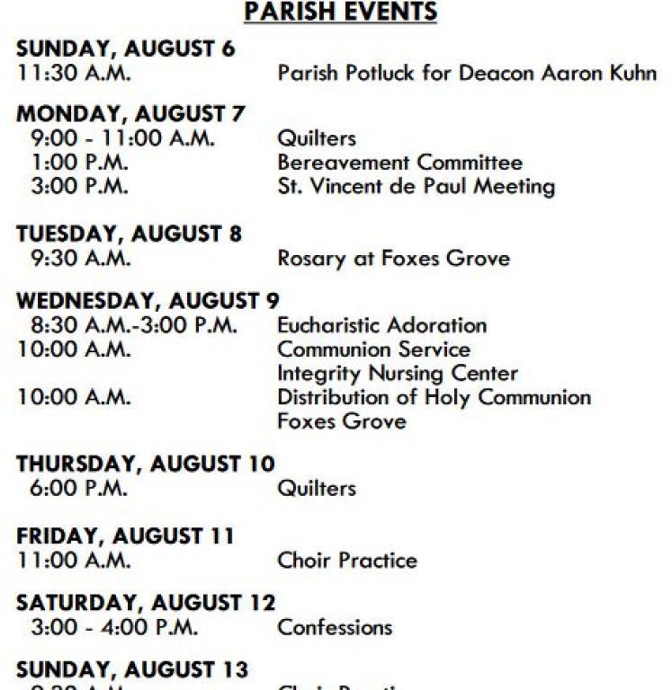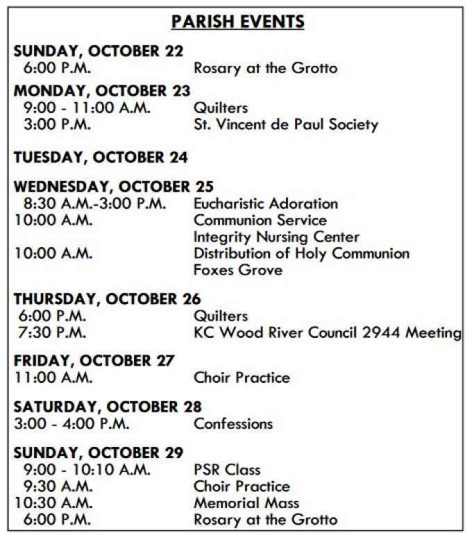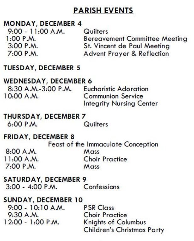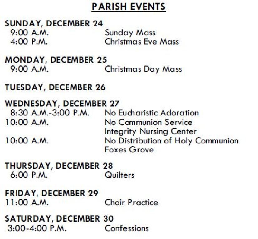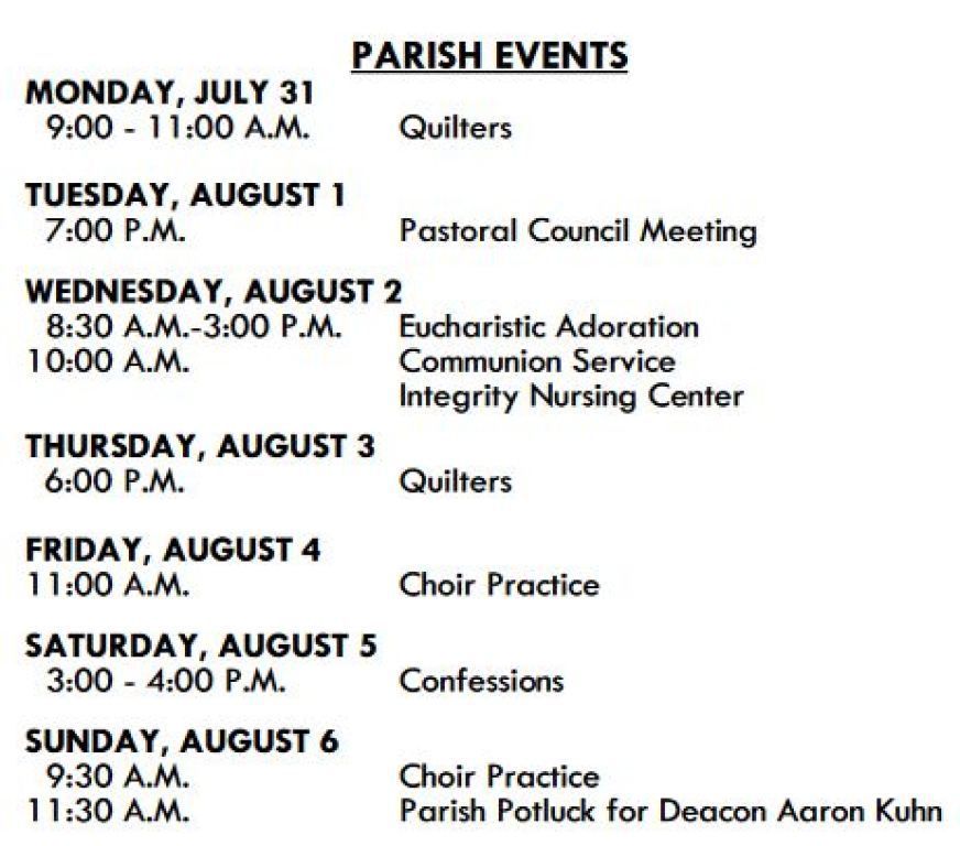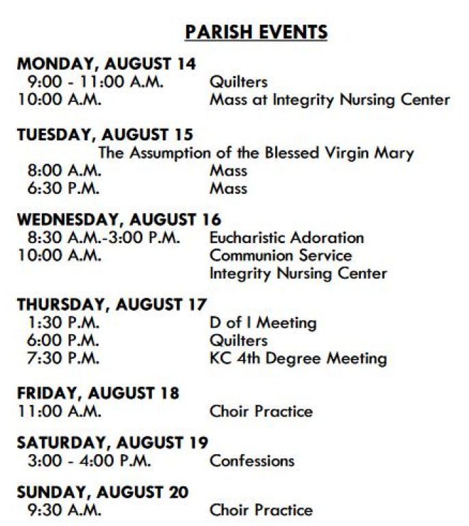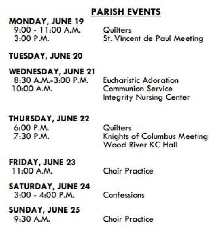 SEE THE APPROPRIATE BULLETINS FOR FUTURE PARISH EVENTS: