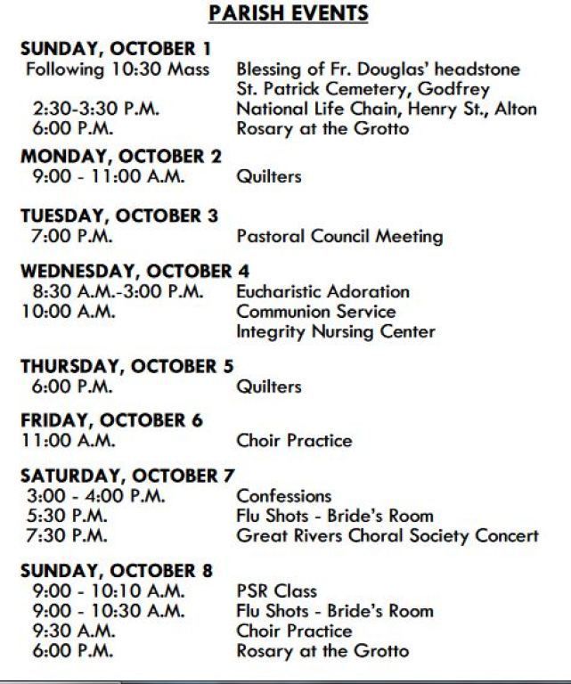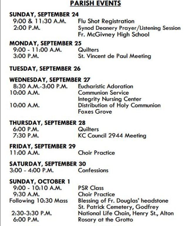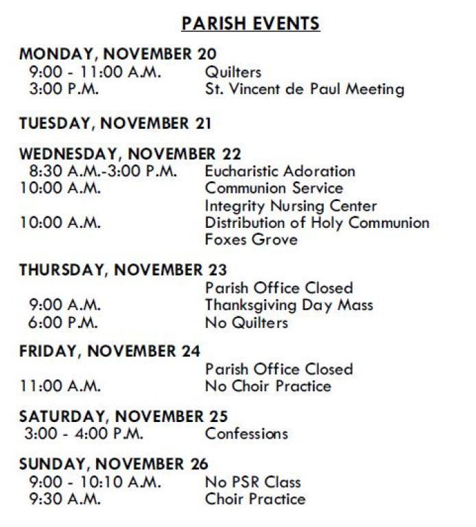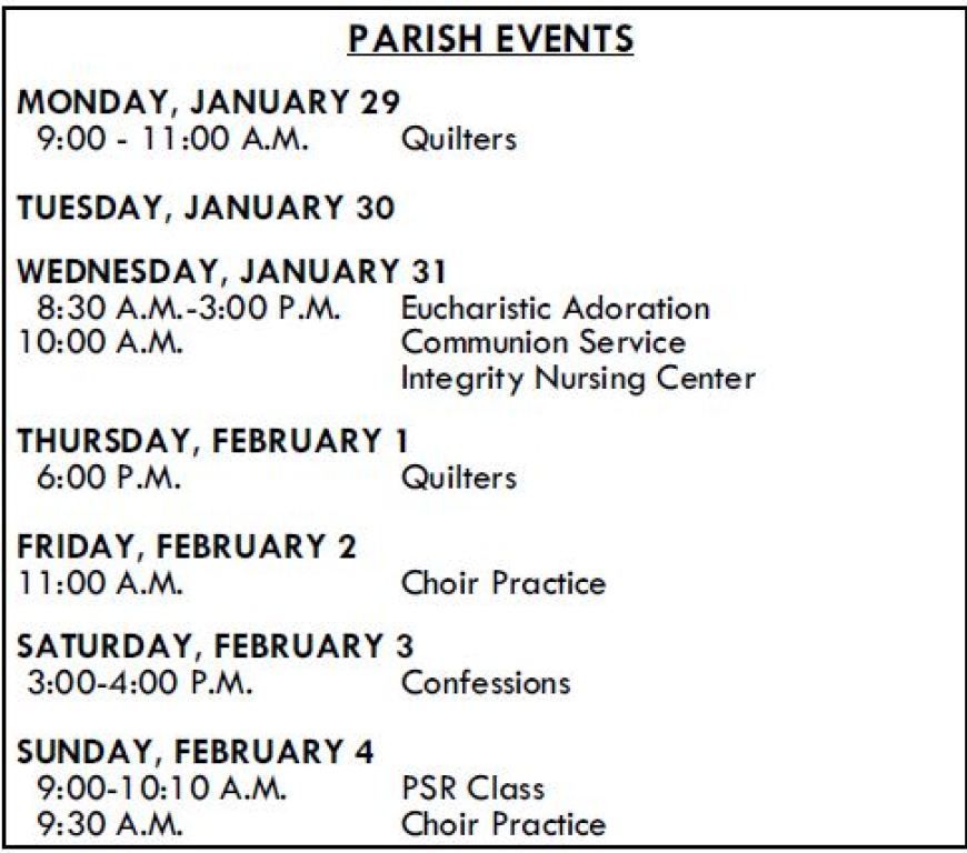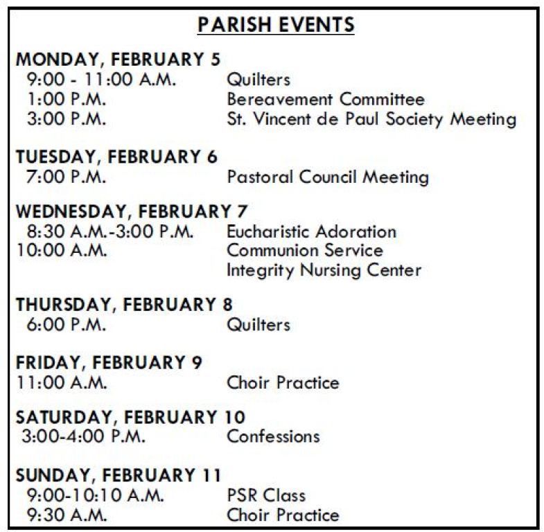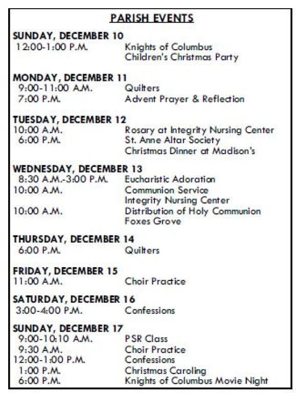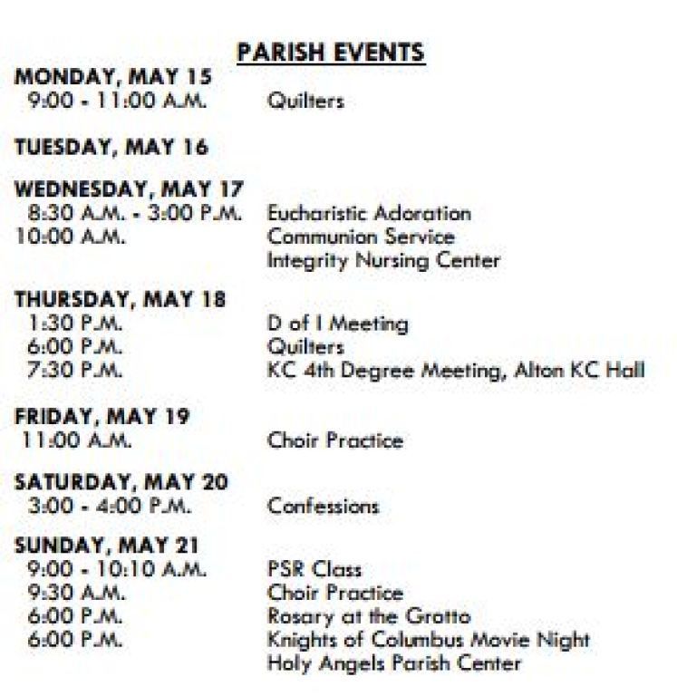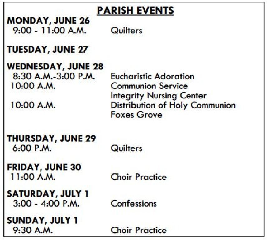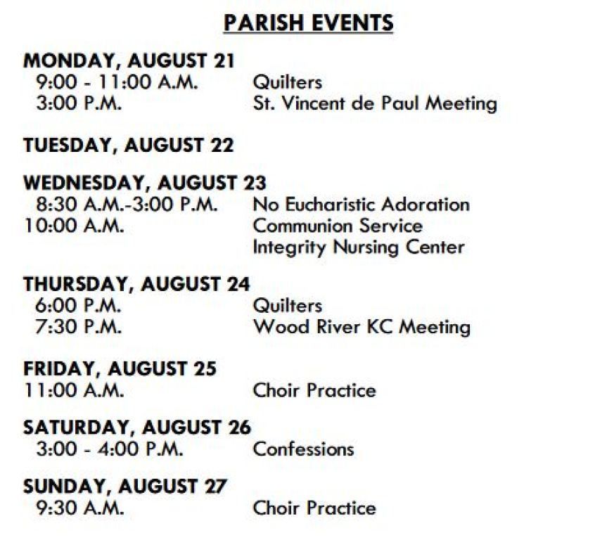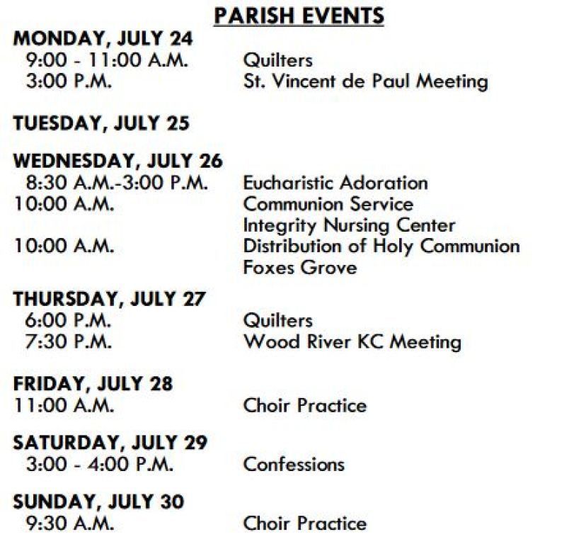 SEE THE APPROPRIATE BULLETINS FOR FUTURE PARISH EVENTS: