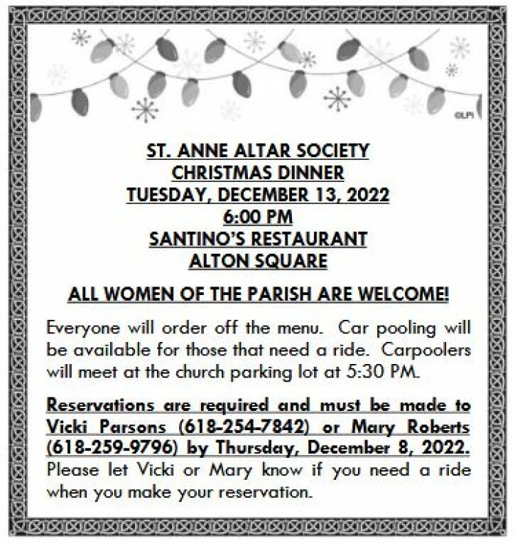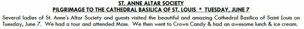 SEE APPROPRIATE BULLETIN FOR MORE CURRENT "SAINT ANNE ALTAR SOCIETY" UP-TO-DATE INFORMATION. Bulletins
